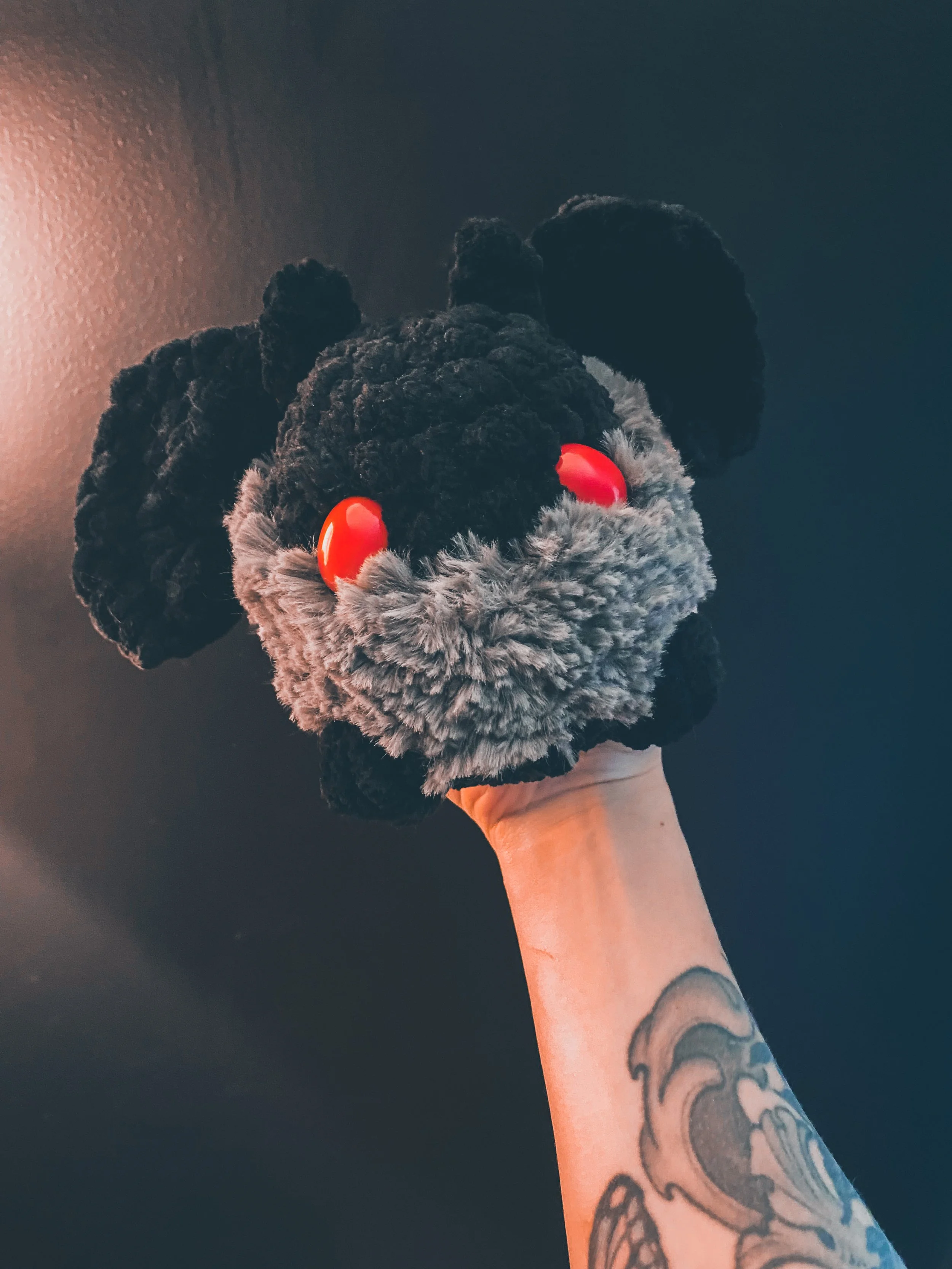 The most misunderstood cryptid, Mothman’s just trying to warn you about the bridge. This pocket sized harbinger of doom is approx. 5 inches tall and comes in two varieties, with gray or black fur.